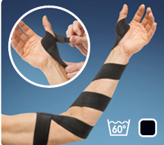 El kit precortado puede usarse para supinar el antebrazo en pacientes neurológicos. Se sujeta por encima del pulgar y luego el espiral sube por encima de la articulación del codo para controlar y ayudar a la rotación del radio y el cúbito. También puede usarse de la manera opuesta para promover la pronación. Las piezas de gancho para una aplicación segura están incluidas.