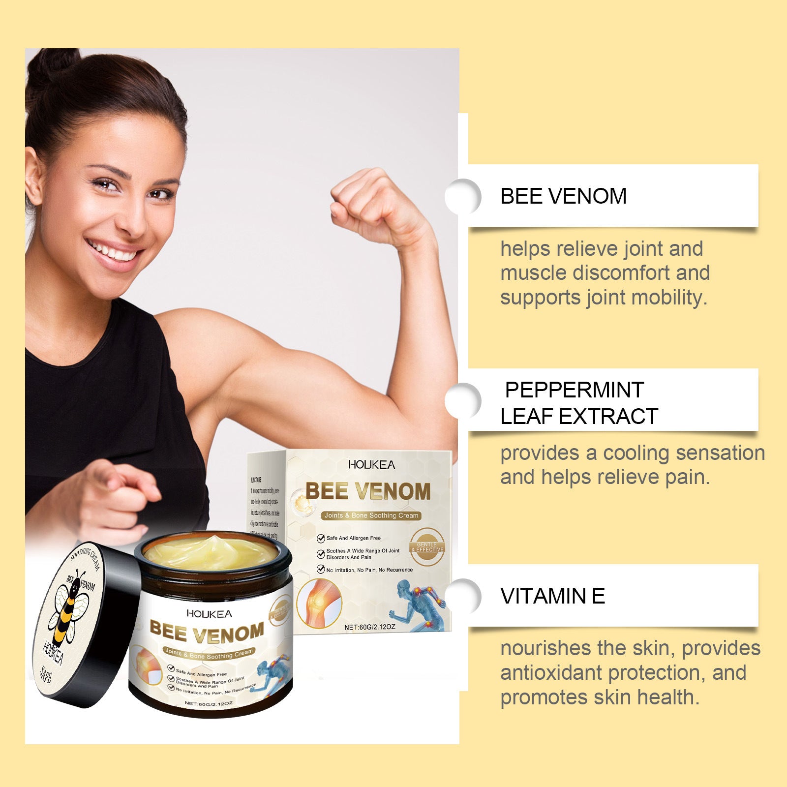 Ingredients: bee venom, arnica extract, Mint leaf extract, vitamin E (tocopherol), chamomile extract